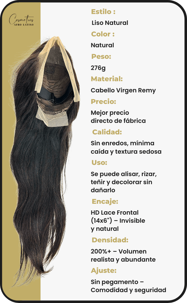 Nuestra peluca está fabricada con estrictos estándares de calidad y es completamente libre de químicos, lo que la hace segura, duradera y perfecta tanto para el día a día como para ocasiones especiales. ¡Luce una melena lisa y radiante con un acabado impecable!