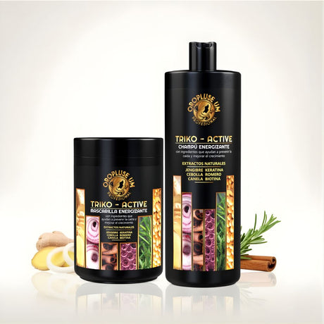 Pack Oropluse UM Triko-Active Champú Energizante y Mascarilla Energizante con Jengibre, Keratina, Cebolla, Romero, Canela y Biotina para Nutrir y Mejorar el Aspecto del Cabello 1L + 1KG